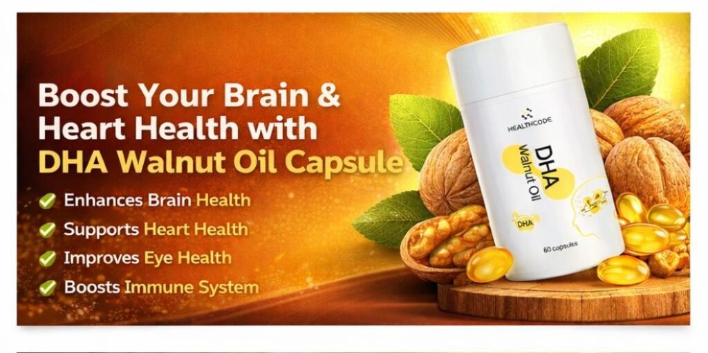 Healthcode DHA Walnut Oil Soft Capsule is a powerful natural brain supplement that combines pure DHA from algae with premium walnut oil. It’s specifically designed to support and improve brain function, memory, vision, and overall immunity for people of all ages – from unborn babies to elderly people.